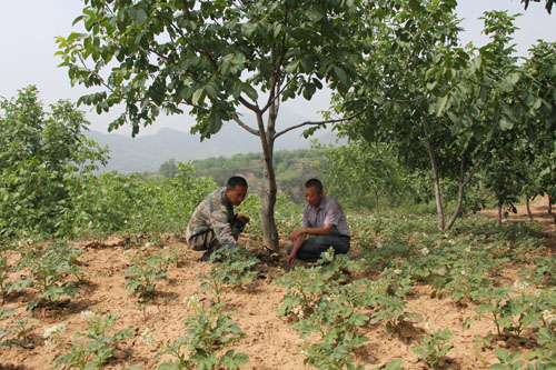 自古獨居一地的山藥蛋,如今又種上了核桃樹。這是五臺縣陽白鄉(xiāng)桑院村從五臺農(nóng)商銀行陽白支行貸款70萬元,實施科學(xué)種田的又一“絕招”。一般是1畝山藥蛋地間種10株核桃樹。畝產(chǎn)山藥蛋600公斤,收入960元。核桃樹畝產(chǎn)70公斤,收入1540元。共收入2500元,較單產(chǎn)山藥蛋900公斤的1440元增收58%。最大限度地發(fā)揮了坡地利用率。今年全村核桃樹“嫁”山藥蛋280畝,年產(chǎn)值可望達(dá)到70萬元,增收25.2萬元。(金俊賢 鄭光)