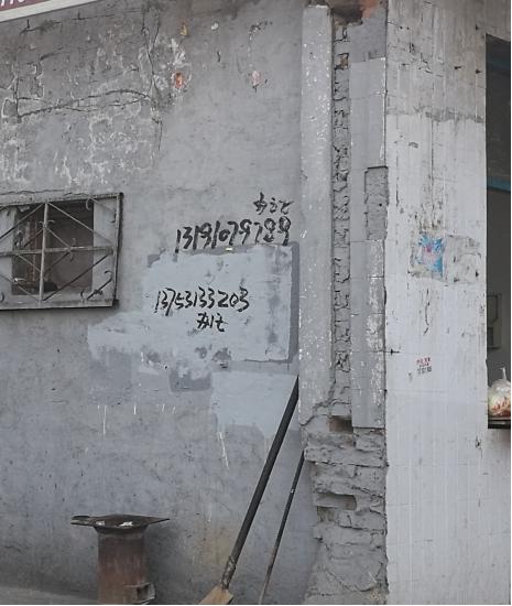 忻州市委黨校巷圣元奶粉對面墻上的違法辦證廣告(劉曉英 攝)