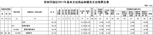 忻州日報(bào)社2017年度部門預(yù)算及“三公”經(jīng)費(fèi)預(yù)算公開情況