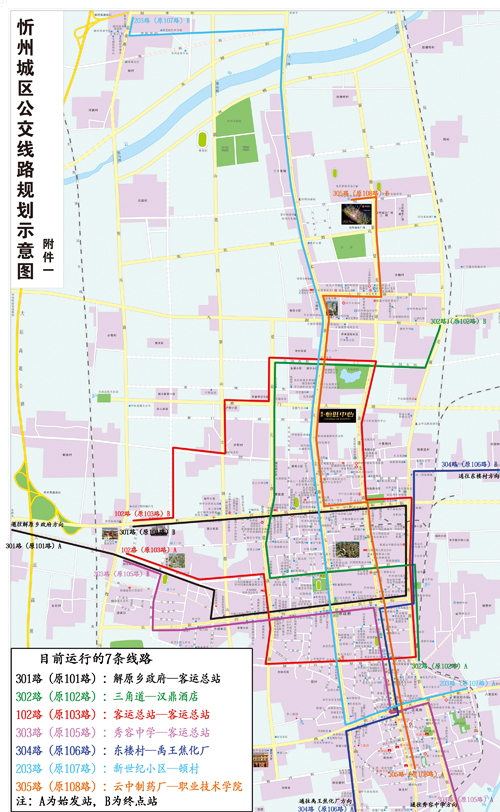 途經(jīng)站點:解原鄉(xiāng)政府→佐城村口→流江村口→新路村口→供熱公司→燕山加油站→田家炳中學→逯家莊村口→武警支隊→寧靜大廈→廣電大樓→忻州六中→日月廣場→忻州市人民政府→君華新天地購物廣場→洗滌化妝品→火車站→云中路小學→和平廣場→市人民銀行→忻州師院→建設路口→忻州市供水公司→客運總站(北),共24個站點。