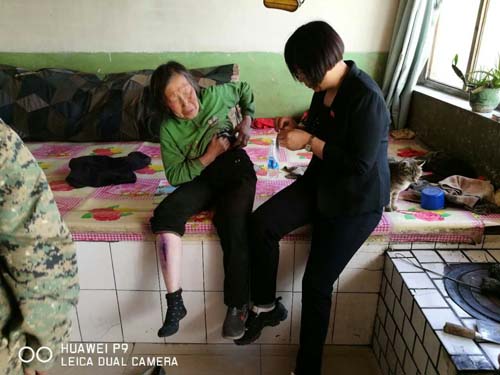 5月16日,忻州市衛(wèi)計(jì)委副主任楊春枝帶著黨支部部分黨員和忻州市中醫(yī)院的醫(yī)護(hù)人員再次趕赴到扶貧點(diǎn)寧武縣涔山鄉(xiāng)漚泥灣村,一進(jìn)村她(他)們連口水也沒有來得及喝,就安排中醫(yī)院醫(yī)護(hù)人員給村民們進(jìn)行體檢,楊主任和支部黨員就組織村委在村的6名黨員干部召開維護(hù)核心見諸行動專題黨課,她(他)們共同重溫黨章,面對黨旗舉手宣誓,楊主任親自上臺主講了一堂生動的黨課。隨后,她(他)們再次看望了貧困戶,在幫扶聯(lián)系貧困戶張存花家中,楊春枝主任從包里掏出自費(fèi)購買的膏藥,并親手扶起衣服給老人貼在患處。“你們大老遠(yuǎn)的每次都來看望我,上次我說腰疼,這次就給我?guī)砹烁嗨帲€親手給我貼上,不知道該怎樣感謝呀,這閨女就是比親閨女都親……”寧武縣涔山鄉(xiāng)漚泥灣村80歲的殘疾貧困戶張存花緊緊拉著扶貧干部忻州市衛(wèi)計(jì)委副主任楊春枝的手,激動地久久不肯松開。(郝法林 米永平)