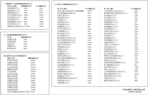 自2018年12月10日市委、市政府辦公廳發(fā)出《關于開展“送溫暖、獻愛心”社會捐助活動的通知》(忻辦字【2018】86號)以來,市四大班子領導率先垂范,各縣(市、區(qū))、各單位高度重視,緊急部署,廣大干部職工積極響應,踴躍捐款,又一次掀起了“送溫暖、獻愛心”社會捐助活動的高潮。截至2019年4月25日下午4時,全市累計接收捐款2802113元,其中市直79個單位組織參加了此次捐助活動,共計捐款585095元;各縣(市、區(qū))接收捐款2217018元,為解決我市困難群眾的生產(chǎn)、生活問題,助推脫貧攻堅起到了積極的作用?,F(xiàn)將活動進展情況公告如下(市直單位以捐助時間先后為序):