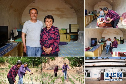 趙樹(shù)江和妻子魏煥英,都是1949年出生,家在山西省長(zhǎng)治市武鄉(xiāng)縣南垴村。老兩口種了5畝玉米、1畝小米,還有核桃樹(shù)。2016年,趙樹(shù)江和魏煥英家的窯洞出現(xiàn)裂縫,他們申請(qǐng)進(jìn)行了危房改造,經(jīng)過(guò)修理后,家里的房子煥然一新。 左上:趙樹(shù)江(左)和妻子魏煥英在家中合影;右上:魏煥英在打掃衛(wèi)生;右中:趙樹(shù)江(左)和妻子魏煥英在家里看電視;下右:魏煥英在院子里掃地;下左、下中:趙樹(shù)江(右)和妻子魏煥英在地里忙碌(拼版照片,6月12日攝)。 地處晉東南的山西省長(zhǎng)治市,位于由太行山、太岳山環(huán)繞而成的上黨盆地中。在群山中、崖壁上,許多村莊自然條件惡劣,基礎(chǔ)設(shè)施落后,脫貧致富是大山深處人們的迫切心愿。 近年來(lái),一場(chǎng)場(chǎng)脫貧攻堅(jiān)戰(zhàn),在一個(gè)個(gè)深山村打響。政府全力探索脫貧路徑的同時(shí),山區(qū)百姓因地制宜,靠自己的雙手和智慧走上致富路,交出了一份扎實(shí)的脫貧答卷。 記者在太行山、太岳山一路尋訪,記錄下多位70歲老人的生活。這些共和國(guó)的同齡人,親歷了山鄉(xiāng)的巨變,見(jiàn)證著長(zhǎng)治山區(qū)脫貧攻堅(jiān)偉大工程的一步步推進(jìn)。 新華社記者 詹彥 攝