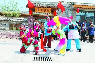 宋家溝村的文藝愛好者為游客表演晉西北特色民俗——秧歌。