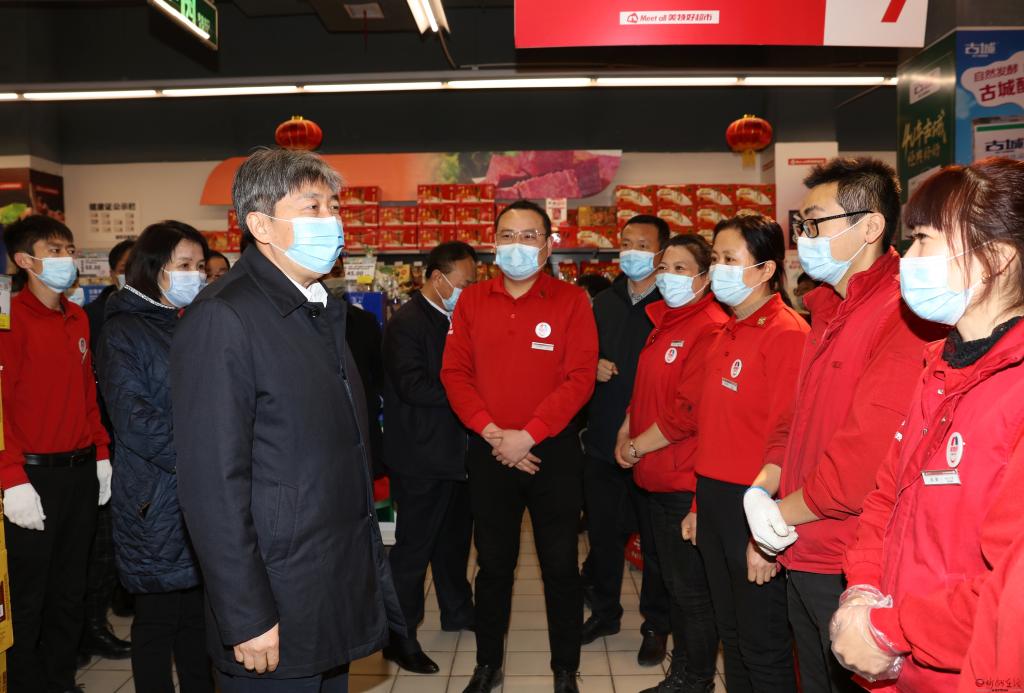 在美特好超市,朱曉東認(rèn)真察看蔬菜、肉類、海鮮等商品,詢問(wèn)價(jià)格、產(chǎn)地、供應(yīng)等情況,仔細(xì)檢查市場(chǎng)疫情防控和食品安全責(zé)任落實(shí)情況,了解冷鏈?zhǔn)称方?jīng)營(yíng)管理工作,隨機(jī)抽查消防栓是否有水和工作人員實(shí)際操作。他強(qiáng)調(diào),群眾能不能過(guò)好年,市場(chǎng)供應(yīng)是關(guān)鍵。要嚴(yán)格落實(shí)公共場(chǎng)所疫情防控要求和應(yīng)急處置等防控措施,全力保障消費(fèi)安全。工作人員要在做好自我防護(hù)的同時(shí),督促進(jìn)店顧客戴好口罩,嚴(yán)格落實(shí)體溫檢測(cè)和行程碼、健康碼查驗(yàn)措施。要切實(shí)保障“菜籃子”“米袋子”“果盤(pán)子”充足,全力做好節(jié)日市場(chǎng)穩(wěn)價(jià)保供工作。要時(shí)刻繃緊食品安全這根弦,強(qiáng)化冷鏈?zhǔn)称钒踩O(jiān)管,保持市場(chǎng)環(huán)境衛(wèi)生整潔,嚴(yán)格遵守食品進(jìn)貨查驗(yàn)制度,做好冷鏈?zhǔn)称蜂N售記錄、流向記錄,切實(shí)做到來(lái)源可查、去向可追,讓群眾過(guò)一個(gè)安定祥和的新春佳節(jié)。