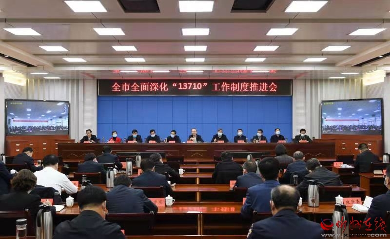 本報(bào)訊 (記者楊峰雷) 2月18日,市委召開(kāi)全市全面深化“13710”工作制度推進(jìn)會(huì)。市委書(shū)記鄭連生主持會(huì)議并講話(huà)。他強(qiáng)調(diào),要深入學(xué)習(xí)貫徹習(xí)近平總書(shū)記關(guān)于抓落實(shí)的重要論述,全面貫徹落實(shí)省委召開(kāi)的全面深化“13710”工作制度推進(jìn)會(huì)精神,充分發(fā)揮“13710”工作制度作用,不斷提升工作質(zhì)量和水平,確保中央、省委、市委各項(xiàng)決策部署及時(shí)落地見(jiàn)效,全力推動(dòng)忻州高質(zhì)量高速度趕超型跨越式發(fā)展,確保忻州“十四五”開(kāi)好局起好步。市委副書(shū)記、市長(zhǎng)朱曉東講話(huà)。市委副書(shū)記、宣傳部長(zhǎng)郭奔勝,市人大常委會(huì)主任王珍,市政協(xié)主席王建廷,市領(lǐng)導(dǎo)劉卓良、秦書(shū)義、崔建新、劉婷芳、劉瑞生、王月娥、武憲堂、裴峰、范建民、賈玲香出席會(huì)議。副市長(zhǎng)、市政府秘書(shū)長(zhǎng)郭寶厚通報(bào)全市“13710”工作制度有關(guān)情況。