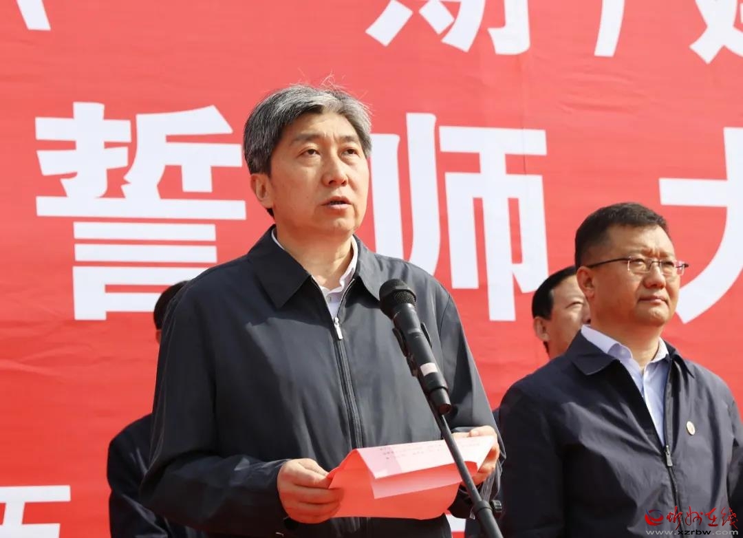 本報(bào)訊 (記者任逢春)5月11日,忻州師范學(xué)院新校區(qū)(一期)建設(shè)搬遷百日攻堅(jiān)誓師大會舉行,進(jìn)一步激勵(lì)全體參建人員凝心聚力,緊抓施工黃金期,大干100天,確保忻州師院新校區(qū)9月份前如期順利投入使用。市長朱曉東出席活動(dòng)并提出工作要求。忻州師院黨委書記王軍致辭。市政府一級巡視員武憲堂主持誓師大會。忻州師院院長張虎芳,市政府副市長、秘書長郭寶厚等出席大會。市直相關(guān)部門負(fù)責(zé)人,山西建投、山西建工職工代表,忻州師院師生代表等參加大會。、