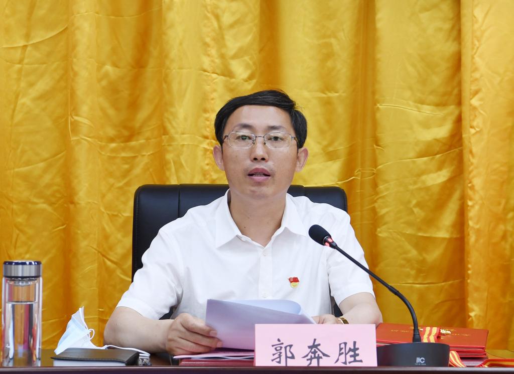 郭奔勝宣讀《中共忻州市委關(guān)于表彰全市優(yōu)秀共產(chǎn)黨員、優(yōu)秀黨務(wù)工作者、先進基層黨組織的決定》。劉紀(jì)森 攝