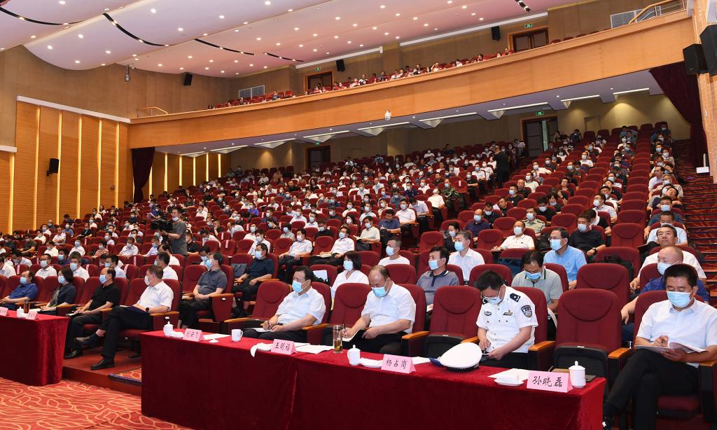 創(chuàng)建全國(guó)文明城市鞏固提升暨國(guó)家衛(wèi)生城市復(fù)審暗訪反饋問題整改推進(jìn)會(huì)議會(huì)場(chǎng)。 劉紀(jì)森 攝 本報(bào)訊 (記者楊峰雷)6月30日,我市召開2021年創(chuàng)建全國(guó)文明城市鞏固提升暨國(guó)家衛(wèi)生城市復(fù)審暗訪反饋問題整改推進(jìn)會(huì)議,動(dòng)員全市上下,進(jìn)一步統(tǒng)一思想,深化認(rèn)識(shí),協(xié)調(diào)推進(jìn)創(chuàng)文鞏固提升和創(chuàng)衛(wèi)問題整改工作,明確新的要求,壓實(shí)各方責(zé)任,全面推動(dòng)我市全國(guó)文明城市和國(guó)家衛(wèi)生城市的常態(tài)化鞏固提升。市委書記鄭連生主持會(huì)議并講話。市委副書記、市長(zhǎng)朱曉東作具體部署。市委副書記、政法委書記、宣傳部長(zhǎng)郭奔勝通報(bào)2021年創(chuàng)文重點(diǎn)工作情況。王珍、王建廷、劉卓良、張文偉等四大班子領(lǐng)導(dǎo)出席會(huì)議。副市長(zhǎng)賈玲香通報(bào)國(guó)家衛(wèi)生城市復(fù)審暗訪反饋問題并安排部署整改工作。