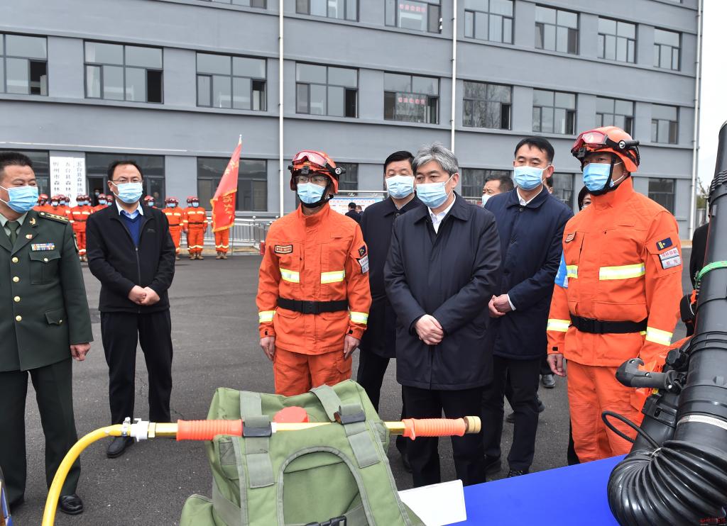 當(dāng)前已經(jīng)進(jìn)入森林防火特險(xiǎn)期,在內(nèi)蒙古森林消防總隊(duì)指戰(zhàn)員駐防五臺(tái)縣東雷鄉(xiāng)應(yīng)急救援訓(xùn)練基地,朱曉東專程慰問(wèn)指戰(zhàn)員并檢查應(yīng)急物資儲(chǔ)備情況。他希望森防總隊(duì)保持高度臨戰(zhàn)狀態(tài),發(fā)揮專業(yè)護(hù)林滅火優(yōu)勢(shì),持續(xù)強(qiáng)化應(yīng)急演練,結(jié)合五臺(tái)地形氣候?qū)嶋H,以實(shí)戰(zhàn)化演練為導(dǎo)向,完善應(yīng)急預(yù)案,練就過(guò)硬本領(lǐng);同時(shí)要發(fā)揮所長(zhǎng),把好經(jīng)驗(yàn)好辦法傳授給地方應(yīng)急隊(duì)伍,幫助地方打造有生力量。市縣相關(guān)部門要全方位服務(wù)保障到位、學(xué)習(xí)借鑒到位,通力合作堅(jiān)決打贏護(hù)林防火攻堅(jiān)戰(zhàn)。在定襄縣林業(yè)局聽(tīng)取森林防火預(yù)警監(jiān)控系統(tǒng)運(yùn)行情況后,朱曉東指出,護(hù)林防火重在防,要堅(jiān)持人防加技防,把人員力量布設(shè)到位,切實(shí)把好入山進(jìn)林關(guān)卡,強(qiáng)化檢查督導(dǎo),堅(jiān)決禁止火源上山,確保實(shí)現(xiàn)火險(xiǎn)火情“打早打小打了”。