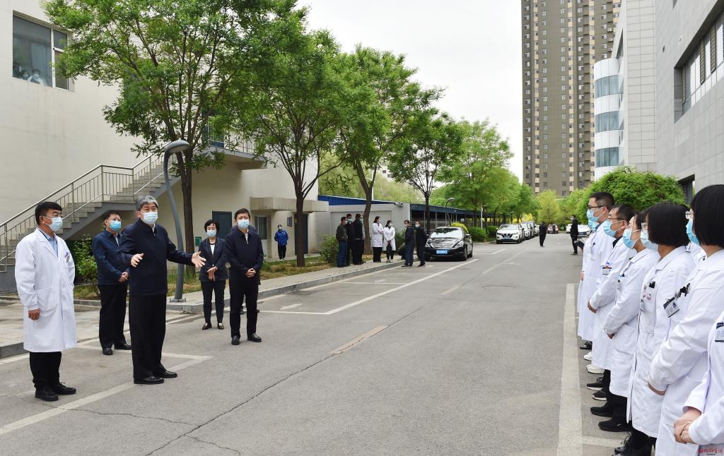 在忻州市人民醫(yī)院慰問(wèn)防疫一線醫(yī)務(wù)人員。馮曉磊 攝