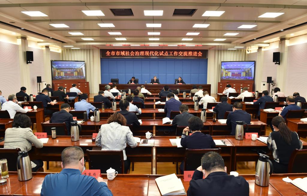 朱曉東出席并講話。馮曉磊 攝 朱曉東指出,推進(jìn)市域社會(huì)治理現(xiàn)代化,是以習(xí)近平同志為核心的黨中央立足黨和國家事業(yè)發(fā)展全局、推進(jìn)國家治理體系和治理能力現(xiàn)代化作出的重大決策部署,事關(guān)人民安居樂業(yè),事關(guān)社會(huì)安定有序,事關(guān)國家長治久安。市域在國家治理結(jié)構(gòu)中處于關(guān)鍵層級(jí),具有承上啟下的樞紐作用、以城帶鄉(xiāng)的引擎作用、以點(diǎn)帶面的示范作用,推進(jìn)市域社會(huì)治理現(xiàn)代化,有利于全面提升治理能力和水平,有利于防范化解重大風(fēng)險(xiǎn),有利于更好地保障和改善民生,有利于全方位推動(dòng)高質(zhì)量發(fā)展。各級(jí)各部門要站在堅(jiān)定捍衛(wèi)“兩個(gè)確立”、堅(jiān)決做到“兩個(gè)維護(hù)”的高度,把思想和行動(dòng)統(tǒng)一到市委市政府的決策部署上來,全面凝聚爭(zhēng)創(chuàng)市域社會(huì)治理現(xiàn)代化試點(diǎn)城市工作合力,進(jìn)一步形成共建共治共享的良好氛圍,立足實(shí)際統(tǒng)籌謀劃、周密部署、推動(dòng)實(shí)踐。