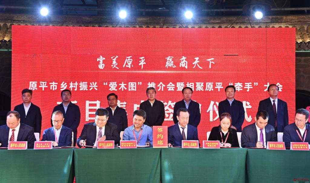 此次推介活動分為五部分,第一階段主要是參觀愛木圖景區(qū);第二階段是在愛木圖古村廣場舉行文藝表演;第三階段是項目簽約,共有15個項目舉行現(xiàn)場簽約;第四階段主要是愛木圖推介會,原平市委主要負責人作原平鄉(xiāng)村振興“愛木圖”主旨推介;第五階段是在愛木圖古村廣場舉行“牽手”茶話晚宴。