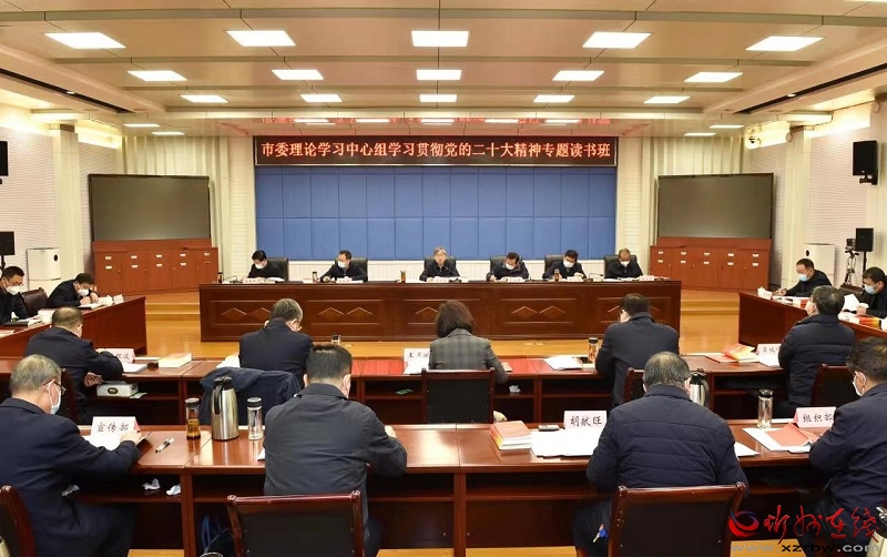 12月16日,市委理論學(xué)習(xí)中心組舉辦學(xué)習(xí)貫徹黨的二十大精神專題讀書班,專題學(xué)習(xí)黨的二十大精神,重點(diǎn)學(xué)習(xí)《黨的二十大報(bào)告輔導(dǎo)讀本》《黨的二十大報(bào)告學(xué)習(xí)輔導(dǎo)百問》《中共中央關(guān)于認(rèn)真學(xué)習(xí)宣傳貫徹黨的二十大精神的決定》;學(xué)習(xí)《習(xí)近平關(guān)于力戒形式主義官僚主義重要論述選編》(節(jié)選)、習(xí)近平總書記關(guān)于穩(wěn)步促進(jìn)全體人民共同富裕的重要論述、習(xí)近平總書記關(guān)于在社會(huì)主義市場經(jīng)濟(jì)條件下發(fā)揮資本積極作用的重要論述;學(xué)習(xí)《中華人民共和國憲法》和《中國共產(chǎn)黨處分違紀(jì)黨員批準(zhǔn)權(quán)限和程序規(guī)定》。市委書記朱曉東領(lǐng)學(xué)并提出貫徹落實(shí)要求。