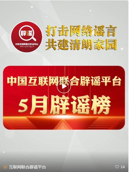 打擊網(wǎng)絡謠言 共建清朗家園 中國互聯(lián)網(wǎng)聯(lián)合辟謠平臺5月辟謠榜