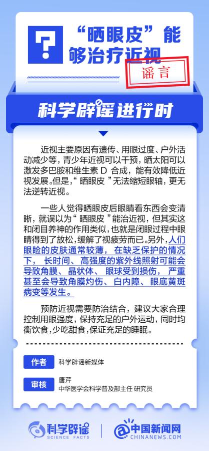 中新網(wǎng)6月6日電 6月6日是全國(guó)愛(ài)眼日。隨著大家越來(lái)越重視護(hù)眼,人們開(kāi)始自發(fā)地從網(wǎng)上查找一些護(hù)眼知識(shí),與此同時(shí),網(wǎng)上也出現(xiàn)了很多的護(hù)眼誤區(qū)。有哪些常見(jiàn)的所謂“護(hù)眼知識(shí)”其實(shí)是誤區(qū)?眼鏡度數(shù)配高點(diǎn)好還是配低點(diǎn)好?詳情↓ (來(lái)源:@科學(xué)辟謠 中國(guó)新聞網(wǎng)微博)