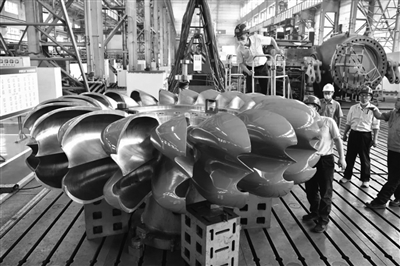圖為東方電機(jī)國(guó)內(nèi)首臺(tái)自主研制的單機(jī)容量最大功率150兆瓦級(jí)沖擊式水電機(jī)組轉(zhuǎn)輪。 資料照片