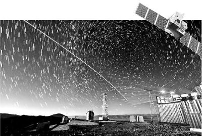 “墨子號”量子科學實驗衛(wèi)星與阿里量子隱形傳態(tài)實驗平臺建立天地鏈路(合成照片)。新華社發(fā)