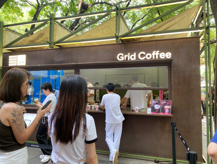 Grid Coffee與迪奧聯(lián)名咖啡吸引消費(fèi)者排隊(duì)購(gòu)買。