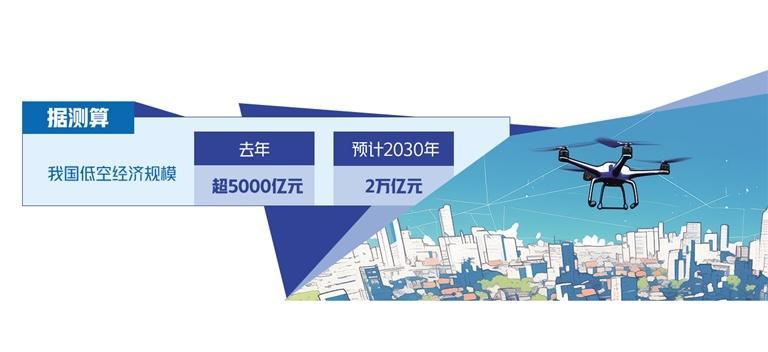 目前,以傳統(tǒng)通用航空和新型無人機(jī)產(chǎn)業(yè)為基礎(chǔ)的低空經(jīng)濟(jì)在我國正蓬勃發(fā)展。截至2023年底,我國通航企業(yè)達(dá)689家,通用機(jī)場(chǎng)451個(gè)。據(jù)測(cè)算,去年我國低空經(jīng)濟(jì)規(guī)模超5000億元,預(yù)計(jì)2030年有望達(dá)到2萬億元。