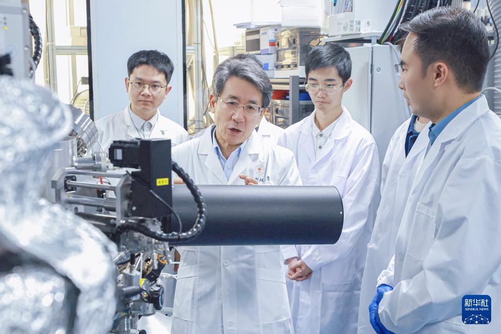 圖為薛其坤與研發(fā)團(tuán)隊在實(shí)驗室進(jìn)行高溫超導(dǎo)研究(資料照片)。新華社發(fā)(受訪者供圖)