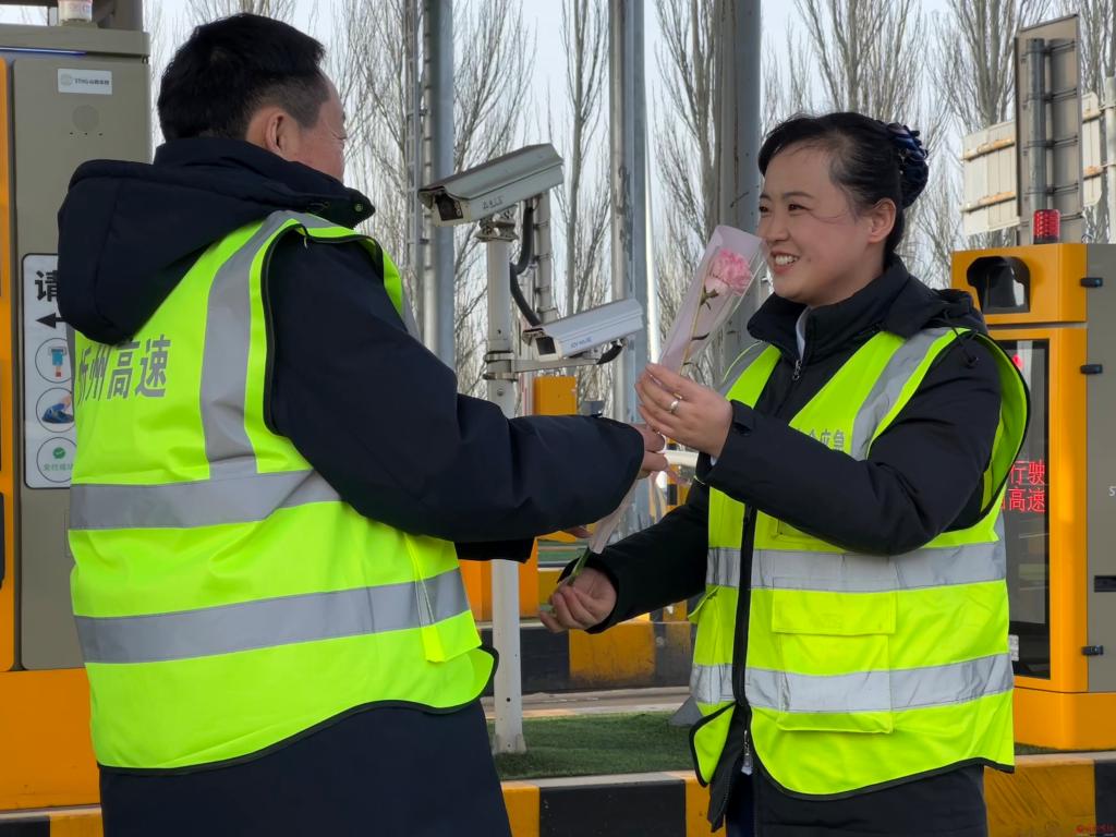 晨光初綻,山西交控忻州公司新廣武收費(fèi)站的車(chē)道還浸潤(rùn)著料峭春寒,新廣武收費(fèi)站黨支部書(shū)記、站長(zhǎng)躬身向車(chē)道巡檢的女職工送上一束裹滿(mǎn)晨露的康乃馨鮮花,女職工接過(guò)花束時(shí),指尖觸碰的不僅是鮮嫩花瓣,更是一份并肩前行的溫度。春風(fēng)吹散她鬢角的碎發(fā),卻吹不散嘴角漾開(kāi)的笑意——那是被看見(jiàn)、被珍視的感動(dòng),如同花瓣上顫動(dòng)的露珠,折射出平凡崗位里的璀璨微光。