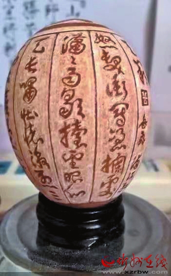 有位岳氏宗親,還寫了一首詩,稱贊岳利民的蛋雕技藝:“蛋雕技藝神奇現(xiàn),水韻山魂栩栩生。獨具匠心巧刻繪,操持刀具任縱橫。山川秀麗鮮花艷,人物鮮明圖案清。方寸之間雕畫棟,清新雅致鳥爭鳴?!?/p>