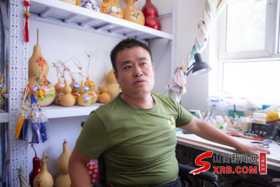 見有客來訪,閆虎文搬出凳子,坐在輪椅上的他提凳子時靠手臂發(fā)力挽著,旁人看著很吃力,想上前幫他一把,閆虎文禮貌地拒絕了:“沒事,我都習慣了?!币苍S是天性低調的緣故,40歲的他給人的感覺還是比較羞澀,話不多,你問一句,他答一句。每句話,都像釘子一樣簡潔有力,也像陽光一樣,溫暖聽者。
