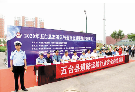 本報訊 (記者張劍雄)7月27日,市生態(tài)環(huán)境局五臺分局、忻州市公安局交通警察支隊、五臺縣公安局、五臺縣應急管理局、五臺縣消防救援大隊、五臺縣人民醫(yī)院、五臺縣交通運輸局、高速交警二支隊七大隊等十多家單位在五臺縣瀛湖大道進行了一次惡劣天氣道路交通事故應急演練。