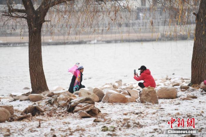 資料圖:12月2日,甘肅蘭州迎來降雪,市民在雪中拍照留影。中新社記者 楊艷敏 攝