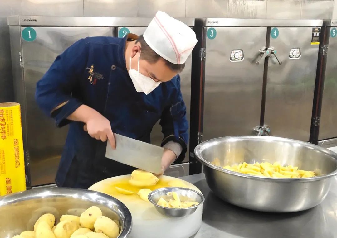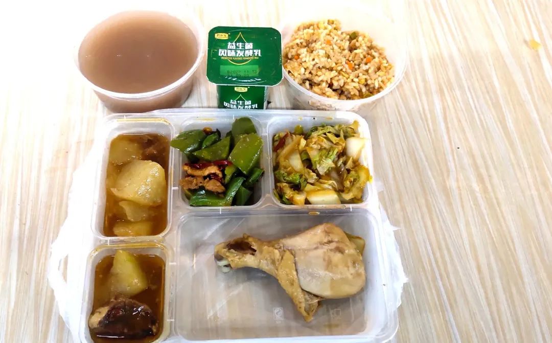 市級(jí)方艙醫(yī)院?jiǎn)⒂靡詠?,作為抗疫主力軍的護(hù)航者,后勤是這場(chǎng)疫情保衛(wèi)戰(zhàn)的關(guān)鍵一環(huán)。為做好方艙醫(yī)院運(yùn)行后的餐飲、生活用品及工作人員的住宿等后勤保障服務(wù)工作,忻州市級(jí)方艙醫(yī)院后勤保障工作組夜以繼日,辛苦奉獻(xiàn),始終和醫(yī)療團(tuán)隊(duì)從黑夜到黎明奮戰(zhàn)在一線。18日中午12點(diǎn),記者來到忻州市方艙醫(yī)院大門口看到,方艙內(nèi)外保障組工作人員正在交接餐食,一包包盒飯、水果從餐車拿出來放到三輪車上,然后由艙內(nèi)后勤保障組工作人員送到方艙內(nèi)醫(yī)護(hù)人員的手中。