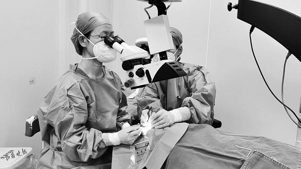 手術過程中,醫(yī)護之間手術器械的傳遞異常小心。用小器械時,助手首先將器械放到托盤里遞到王艷華面前,她再小心地拿起;用大器械時,護士將器械尖端對準自己、末端對準醫(yī)生,然后再遞出去。相比貝貝的水平斜視,樂樂垂直斜視的手術要更復雜一些。兩臺手術用時一小時十分鐘,直至手術順利完成,王艷華才長舒了一口氣。