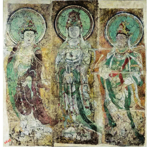 在中國(guó)廳中央墻上有幾十平方米的敦煌壁畫(huà),其割痕雖猶可見(jiàn),卻難掩其久遠(yuǎn)的鮮麗及三位“濃麗豐肥”菩薩的雍容華貴。