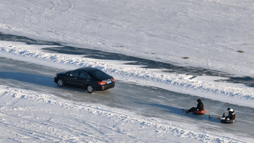 拖拉機拉著雪圈起舞旋轉(zhuǎn)