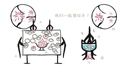 “《用甲骨文的方式打開(kāi)春節(jié)》的靈感就來(lái)自于一位小學(xué)生粉絲的投稿。這位六年級(jí)小朋友經(jīng)常和我們互動(dòng),他畫(huà)的甲骨文小人包餃子的場(chǎng)景畫(huà)面感和趣味感兼具,‘人’‘鼎’‘皿’‘火’字都包含其中,給了我們很多啟發(fā)。”黃麗潔說(shuō),“就在我們打算發(fā)布視頻的前一天,這位小粉絲給我們發(fā)來(lái)了他的手稿,我們都覺(jué)得眼前一亮,立馬將包餃子的畫(huà)面加入視頻當(dāng)中。”