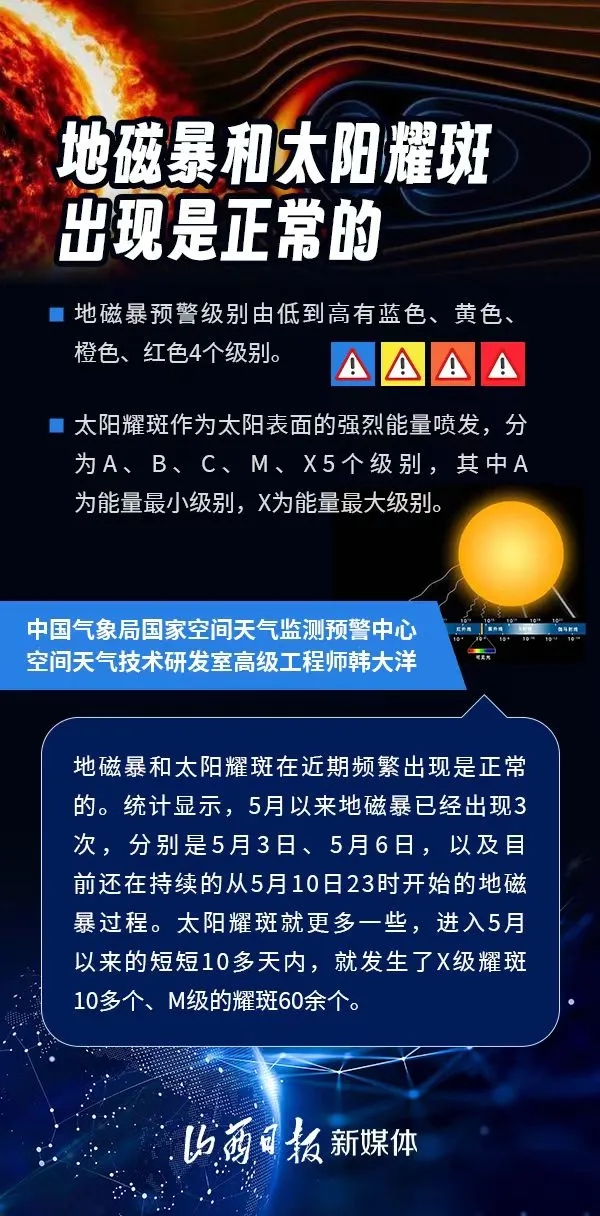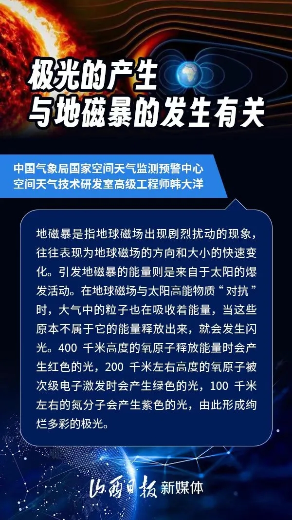 近日,我國多地出現(xiàn)極光現(xiàn)象,引起人們廣泛關注。極光現(xiàn)象與地磁暴活動密切相關。地磁暴以及近期頻繁出現(xiàn)的太陽耀斑為什么發(fā)生?對人們的生活有影響嗎?下面一起來看專家解讀。