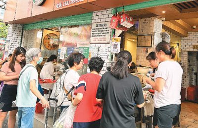 粽子熱氣騰騰地出鍋,門外擠滿了排隊的本地市民、外地游客……位于深圳蛇口市場門口的嘉華小吃店,店面不大,但人氣很旺?!八恤兆拥陜?nèi)現(xiàn)包,高峰期4個‘粽子工’從早到晚忙不停,一天賣出好幾千個?!钡曛魅~向家說。憑借父輩傳授的裹粽手藝,葉老板從推車擺攤開始,將嘉華小吃店做成一家20年老店,如今又登上了“必吃榜”。