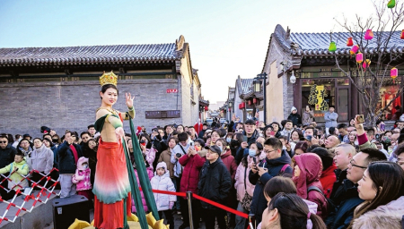 “實景演出、非遺表演、傳統(tǒng)民俗、特色美食、科技體驗,景區(qū)‘火力全開’,帶來的影響簡直超乎我們想象。”蛇年一開張,晉中左權(quán)縣桐峪1941小鎮(zhèn)便迎來了新春“開門紅”,火爆程度讓該縣桐峪鎮(zhèn)桐灘村黨支部書記申亞俊感慨道:“人山人海,好多村民可能這輩子都沒想到,自己家鄉(xiāng)能吸引這么多人。”