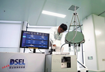 記者走進位于安徽合肥高新區(qū)的深空探測實驗室,實驗室工作人員正在調試這臺設備。