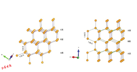 6.常見金剛石的碳原子結構排列(左)與六方金剛石的碳原子排列示意圖。