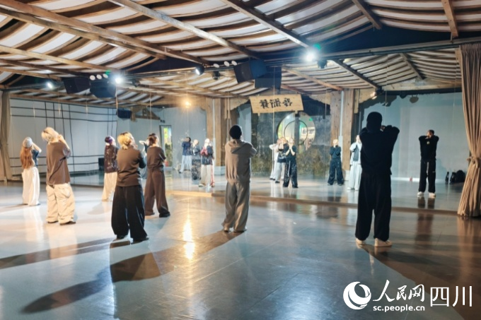 東郊記憶園區(qū)HELLODANCE吾街舞工作室內,街舞愛好者正在練習舞蹈。人民網 趙祖樂攝