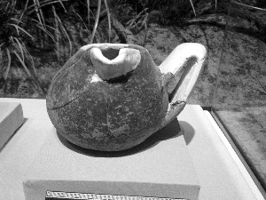 高淳博物館的二樓是一個“通史”展,從6300年前薛城聚落開始說起。彩陶罐、黑斑玉鐲、黑陶杯、螺螄、貝殼……這些“寶貝”都是從高淳薛城遺址出土的,它們已經(jīng)有6300歲了。這些陶器,造型優(yōu)美,尤其是黑陶杯,造型堪稱時尚,杯口還特意設(shè)置了喝水的凹槽。