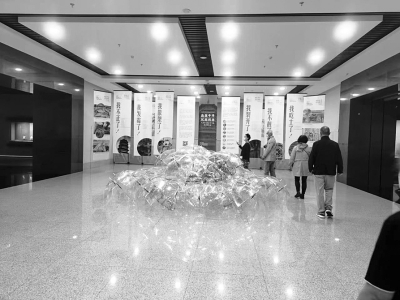 在展示區(qū)域中間,約60把透明的雨傘組建起了“傘陣”藝術(shù)裝置,如果你仔細(xì)觀看,上面有馬克筆繪制的全省重點(diǎn)文物保護(hù)單位的建筑圖案,彰顯了展覽主題。此外,四周懸掛著宣傳海報(bào),上面的內(nèi)容也帶有普及性。比如,氣候變化的影響,氣溫升高、干旱加劇、風(fēng)暴肆虐等一些惡劣自然條件,給人類生活帶來的影響,看著上面的文字,也讓人越發(fā)了解到環(huán)境保護(hù)以及自然保護(hù)的重要性。此外,海報(bào)中還展示了因受到天氣影響,古建筑受損后的樣貌,如古建筑開裂、發(fā)霉、散架等,多角度呈現(xiàn)古建筑受病害困擾時(shí)的狀態(tài),令人唏噓感慨。
