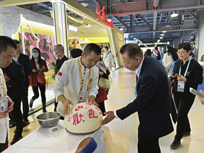 “此次參會,山西會務集團特別準備了近年推陳出新、改良工藝的美食新品,希望以美食為載體,以文化為橋梁,讓更多人了解山西、走進山西、愛上山西、投資山西?!蓖醮喝A說,“從連續(xù)幾天觀眾的反饋來看,山西刀削面、莜面栲栳栳最受大家歡迎,每天都有人排長隊品嘗,可以說供不應求。此外,酥脆香甜的原平鍋盔、用石子炒制的石頭餅、精心烘焙的黃花餅、經典小吃柳林碗托等都是觀眾愛吃的‘爆款’,再配合精彩的面食表演,來往客商連連點贊,直呼好吃好看?!?/p>