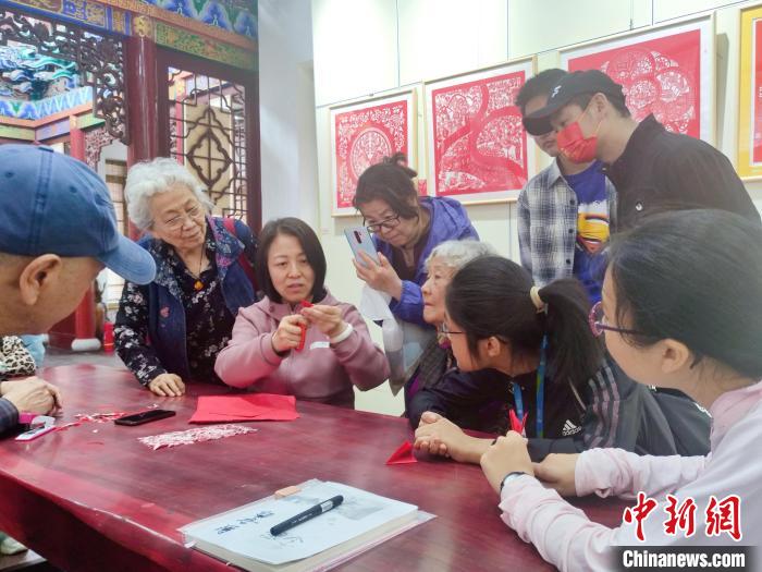 游客現(xiàn)場體驗(yàn)剪紙,感受中華傳統(tǒng)文化的魅力。楊靜攝