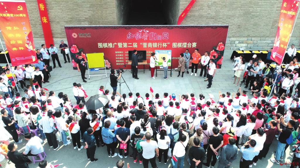 5月22日上午,忻州古城東門永豐門城墻下,來自忻州各圍棋培訓(xùn)機(jī)構(gòu)的100名少年兒童,與忻州十幾位業(yè)余高手車輪對決,用這種別開生面的方式,表達(dá)“紅領(lǐng)巾永遠(yuǎn)心向黨”的赤子情懷。這一活動由忻州廣播電視臺通過微視頻進(jìn)行了現(xiàn)場直播。 (郭劍峰 攝)