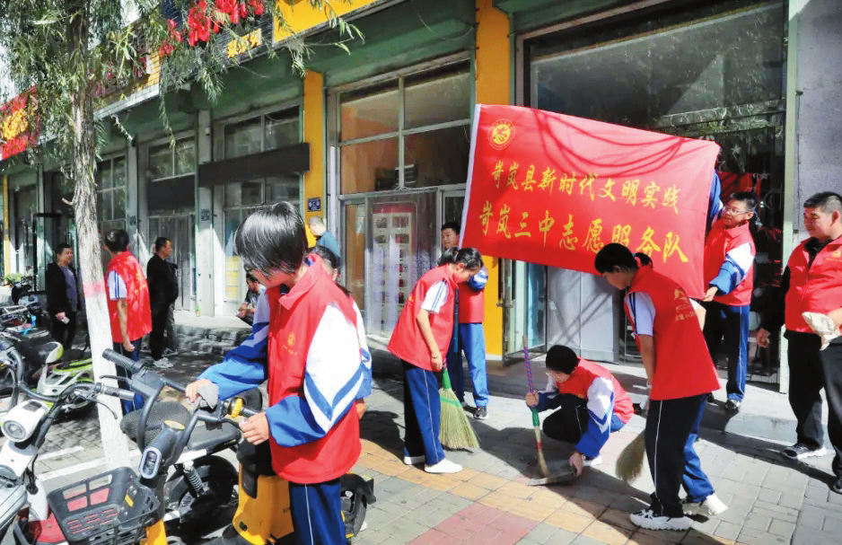 學生志愿者在街頭開展服務活動