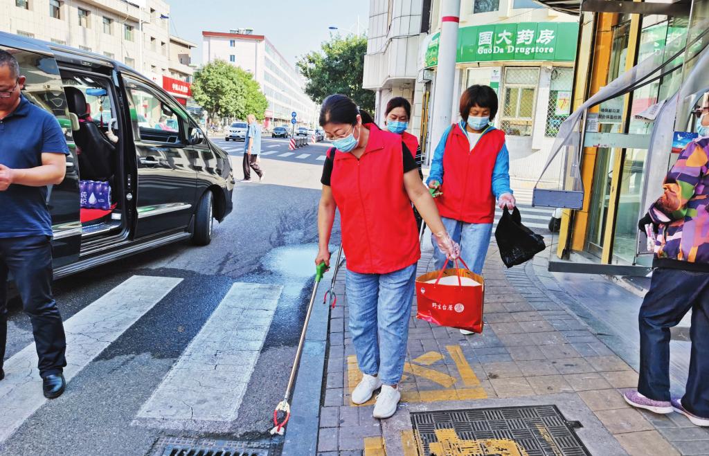 志愿者在街頭清掃垃圾