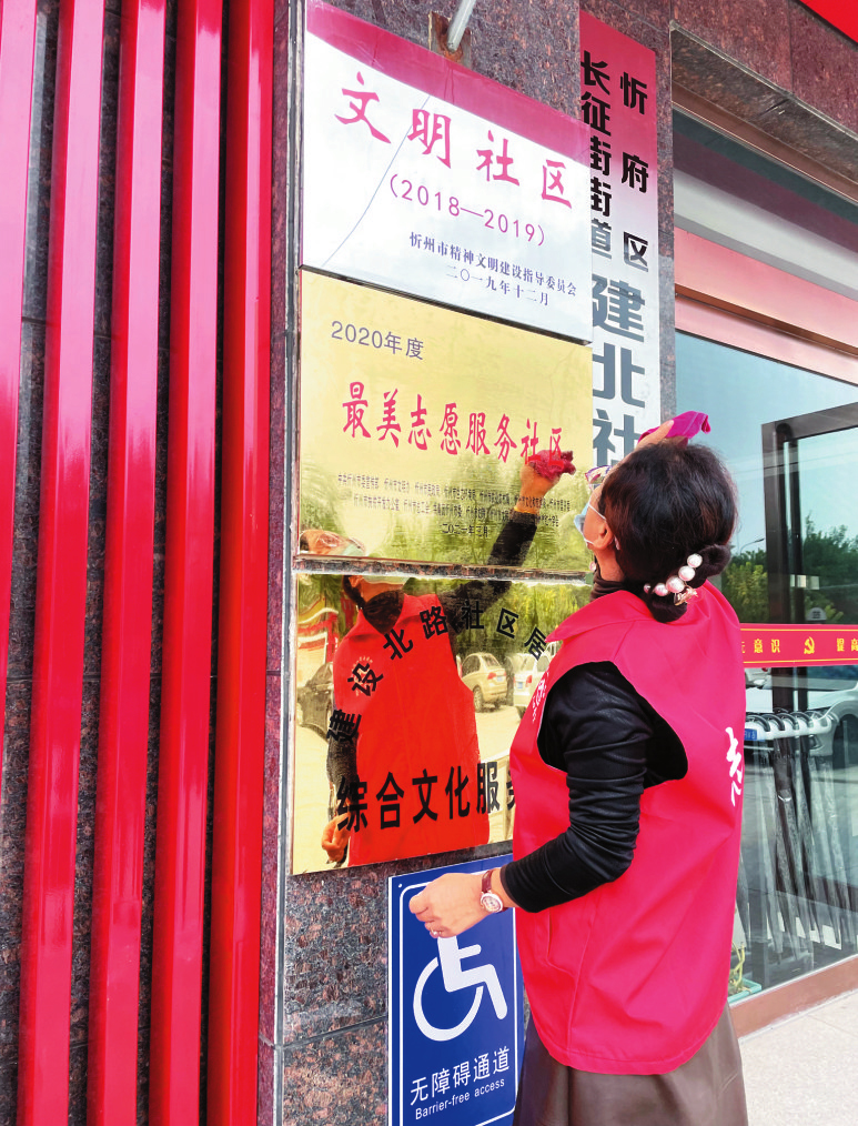 建北社區(qū)新時(shí)代文明實(shí)踐站的志愿者正在進(jìn)行清潔工作。 李憶彤?dāng)z