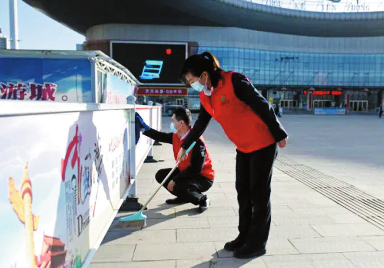 活動前,機關(guān)黨支部書記帶領(lǐng)大家莊嚴宣誓:“我志愿加入中國共產(chǎn)黨,擁護黨的綱領(lǐng),遵守黨的章程……”宣誓后,黨員志愿服務(wù)者拿著準備好的毛巾、掃帚等工具,在市客運中心開展了清潔服務(wù),大到站臺廣告、垃圾桶,小到地上的煙蒂和灰塵、綠化帶中的垃圾,都認真清理、不留死角。